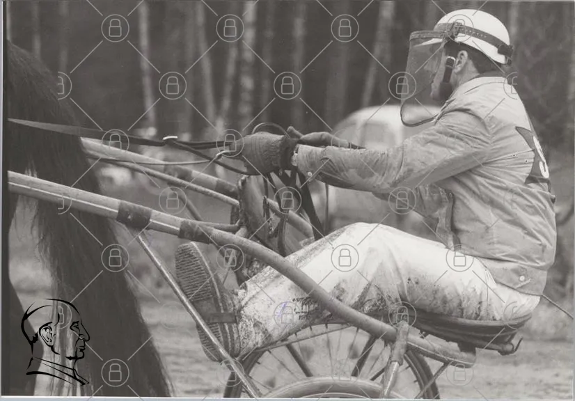 häst, sulky, trav, ryttare, sport, tävling, hästsport, körning, svartvitt, utrustning, skog, natur, fart, adrenalin, tradition, hästkapplöpning, man, hjälm, sele, vagn, ridning, tävlingsdräkt, spänning, publik, landskap, motion, hobby, nostalgi, ekipage, racing