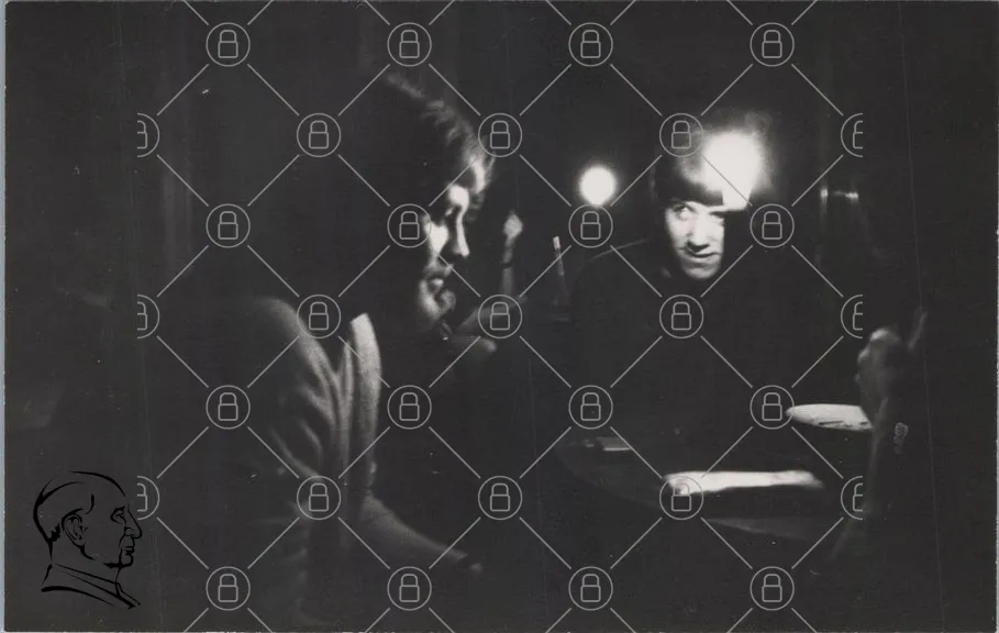 mörker, ljus, ansikten, människor, samtal, svartvitt, fotografi, 1960-tal, ungdomar, intimitet, fokus, skugga, uttryck, rum, belysning, retro, nostalgi, konst, kultur, interaktion