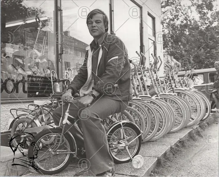 man, cykel, butik, 1970-tal, svartvit, barncykel, kläder, leende, fönster, cykelställ, retro, ungdom, sportjacka, kortbyxor, stil, nostalgi, utomhus, cykelbutik, fotografering, landskap, cykelhjul, tröja, skor, hår, ansikte, cykelkultur, fritid, lek, ungdomskultur, cykelåkning
