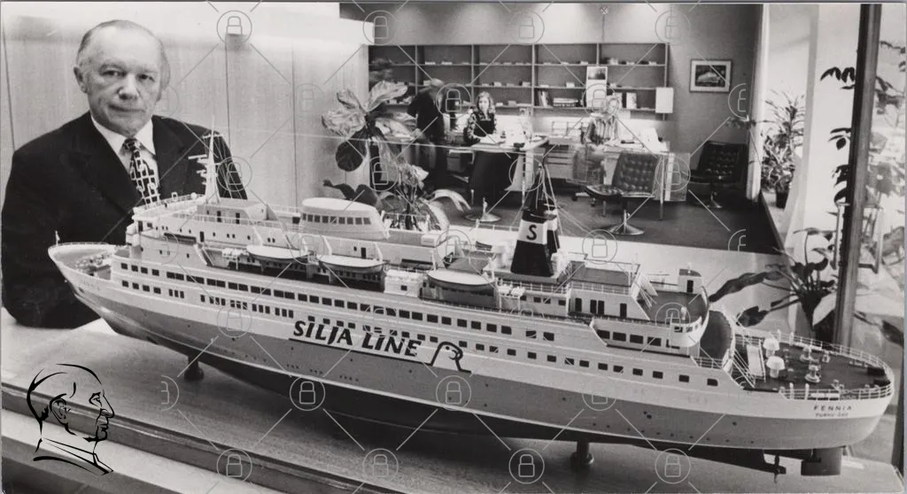 båt, modell, Silja Line, kontor, reception, växter, svartvitt, inredning, människor, segla, fartyg, turism, resor, sjöfart, historia, 1980-tal, skala, presentation, design, arkitektur, sjö, passagerare, service, företag, kontorsmiljö, utställning, reklam, kultur, nöje, fritid