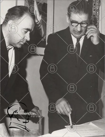 svartvitt, foto, män, diskussion, papper, skrivbord, glasögon, kläder, 1960-tal, kontor, dokument, anteckningar, professionell, interaktion, ansiktsuttryck, koncentration, arbete, retro, stil, historisk, miljö, detaljer, kroppsspråk, samarbete, forskning, intellektuell, analys, presentation, information