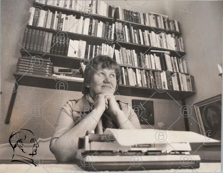 kvinna, skrivmaskin, böcker, bibliotek, kontor, svartvitt, eftertänksam, inredning, litteratur, skrivande, 1900-tal, studier, kreativitet, kultur, forskning, akademisk, pensel, papper, skrivbord, konst, historia, intellekt, inspiration, kvinnlig författare, nostalgisk, klassisk, utbildning, litterär, text, bildkonst