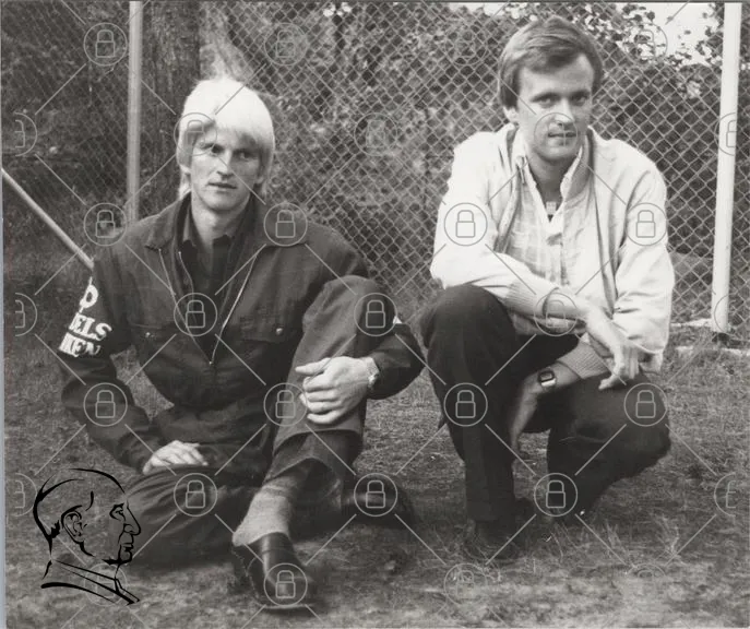 svartvitt, foto, män, kläder, 1980-tal, stil, retro, sittande, stående, frisyr, bakgrund, natur, gräs, jeans, jacka, pose, uttryck, vintage, kompisar, vänskap, utomhus, gammal, nostalgi, fotografi, svart, vit