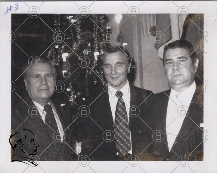 tre män, fest, jul, träd, kostymer, slipsar, leende, inomhus, dekorationer, svartvitt, gammal bild, samling, tradition, högtid, firande, vänskap, minnen, 1980-tal, stil, kläder, ansikten, bakgrund, sällskap, fotografi, nostalgi, evenemang, socialt, glädje, samvaro, festligheter