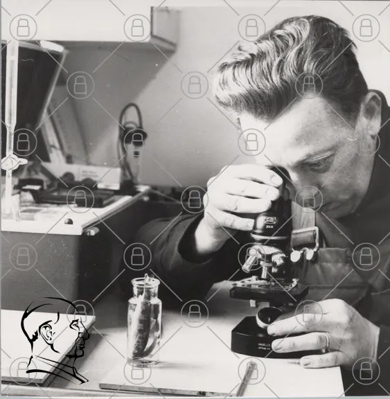 mikroskop, forskning, vetenskap, laboratoriemiljö, man, analys, objektiv, prov, studie, teknik, 1900-tal, svartvitt, experiment, utbildning, observation, detaljer, precision, instrument, arbete, akademisk, upptäckter, mikroskopi, hand, skrivbord, utrustning, fokus, noggrannhet, professionell, intellektuell, lärande