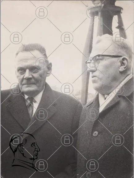 svartvit, män, kostymer, glasögon, porträtt, historisk, 1900-tal, ansikten, uttryck, kläder, fotografi, gammal, dokumentär, två personer, utomhus, bakgrund, allvarliga, stiliga, traditionell, samarbete, möte, ledare, politik, tidsepok, vintage, nostalgi, kultur, samhälle, historia