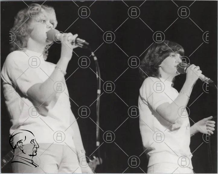 sångare, mikrofon, scen, svartvitt, musik, uppträdande, kläder, 1980-tal, band, live, konsert, publik, underhållning, artist, rock, pop, duo, kvinnor, prestation, ljud, musikaliskt