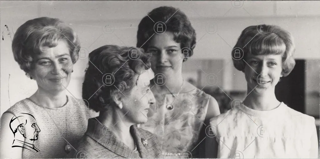 svartvit, kvinnor, porträtt, 1960-tal, mode, vintage, ansikten, kläder, smycken, frisyrer, leenden, interiör, nostalgi, generationer, familj