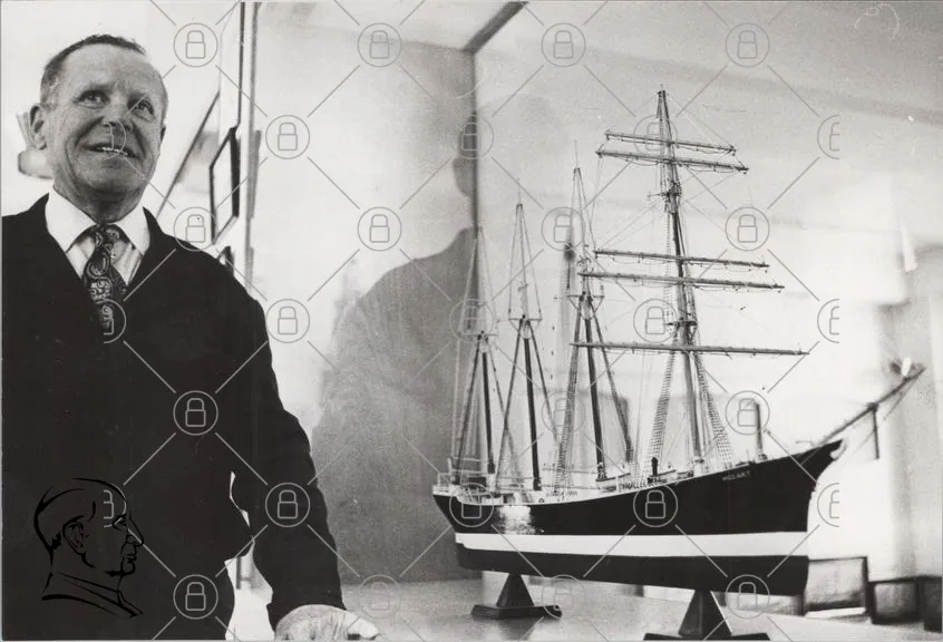 man, modell, segelbåt, historia, marin, fotografi, svartvitt, hantverk, sjöfart, tradition, museum, båt, detaljer, konstruktion, 1900-tal, maritim, skala, modellbygge, sjöman, nostalgi