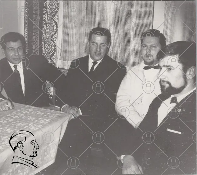 svartvit, män, kostymer, möte, bord, inomhus, 1960-tal, diskussion, formell, kläder, ansikten, traditionell, interiör, fotografi, grupp, samarbete, stil, retro, kultur, historia