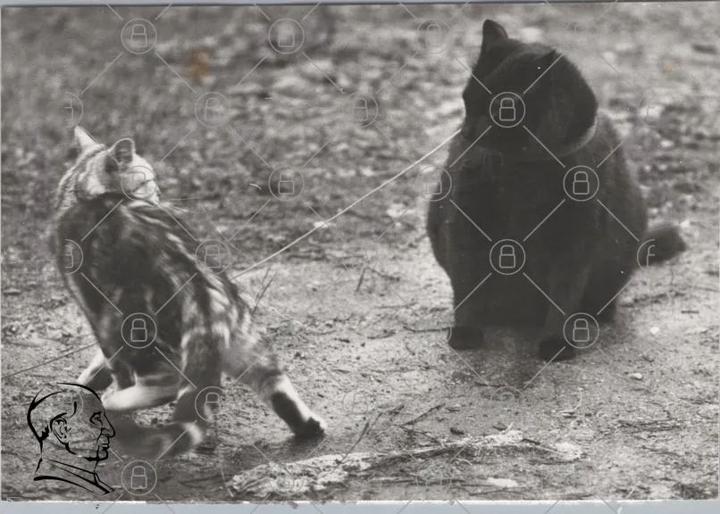 katter, svart katt, randig katt, snöre, utomhus, natur, djur, sällskapsdjur, lekfull, fotografering, svartvitt, kattungar, kattvänner, interaktion, mark, gräs, sällskap, husdjur, katter på promenad, kattliv