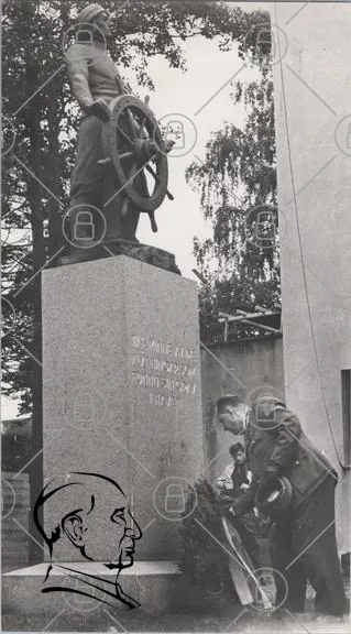 staty, båt, monument, man, kvinna, träd, historisk, svartvit, hamn, sjöfart, kultur, minnesmärke, skulptur, kläder, 1900-tal, fotografi, landskap, stad, aktivitet, människor