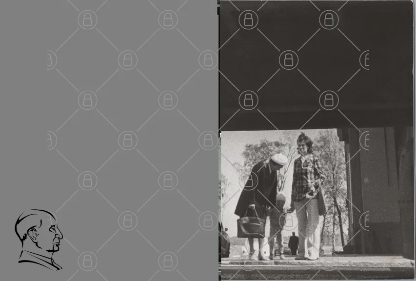personer, kvinnor, kläder, korg, träd, park, svartvitt, 1970-tal, mode, samspel, utomhus, promenad, interaktion, stil, vintage