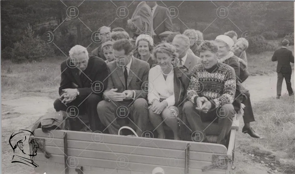 svartvitt, foto, grupp, människor, leende, kläder, 1950-tal, utomhus, sittande, ansikten, traditionell, frisyrer, män, kvinnor, familj, samling, nostalgi, vintage, porträtt, glädje, minnen, socialt, samspel, natur, bakgrund, stil, tidsepok, gemenskap, evenemang, fest