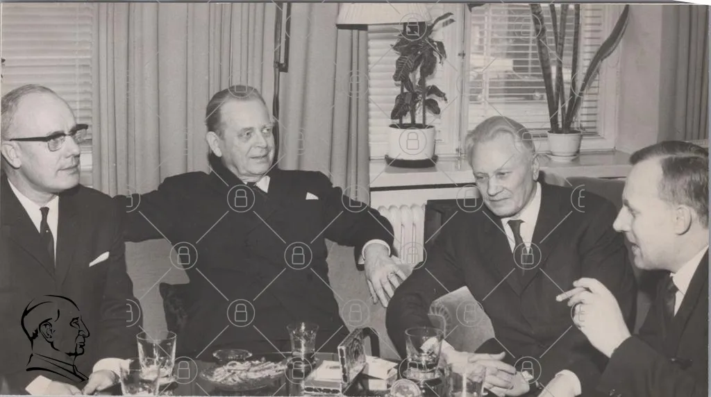 svartvit, foto, män, kostymer, sittande, inomhus, möte, glas, bord, växt, 1900-tal, stil, diskussion, interiör, klassisk, vintage, ansiktsuttryck, gestikulation, samtal, historia