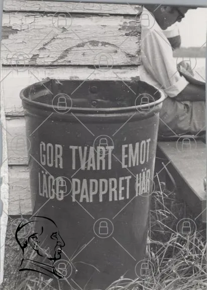 soptunna, papperskorg, text, instruktion, lägg, pappret, här, gör, tvärt, emot, svart, vit, gammal, byggnad, utomhus, person, sittande, landskap, natur, avfall, skräp