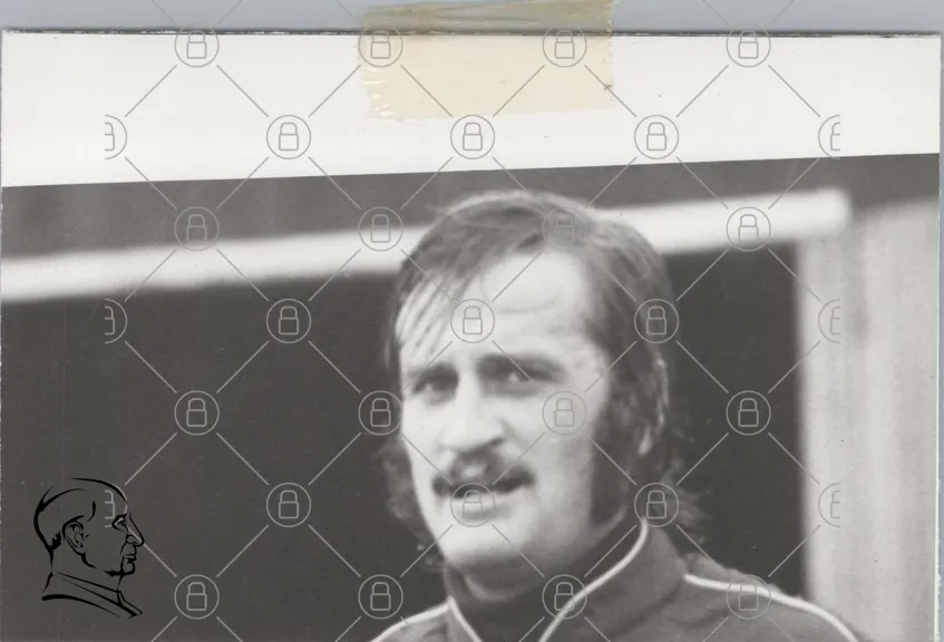 man, mustasch, hår, sport, fotboll, kläder, svart, vit, porträtt, ansikte, 1970-tal, retro, uttryck, leende, idrott, fotografi, vintage, stil, människa, aktivitet