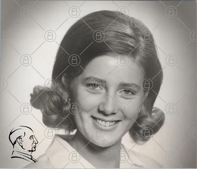 porträtt, kvinna, leende, vintage, svartvit, frisyr, 1960-tal, ungdom, ansikte, fotografi, klassiskt, stil, mode, skönhet, naturlig, charmig, nostalgisk, uttryck, ögon, hår, smycken, kläder, enkelhet, elegans, personlig, minne, historia, kultur, tidlös