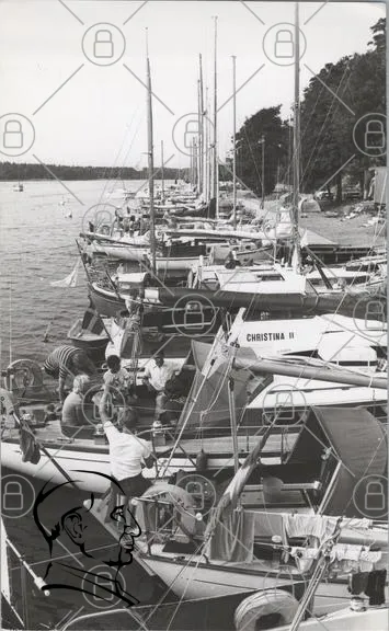 båtar, hamn, segling, människor, sommar, vatten, träbåtar, marina, aktiviteter, fritid, natur, landskap, båtliv, seglare, strand, trä, segel, båtplats, gemenskap, avkoppling, Christina II, kaj, skärgård, fotografering, svartvitt, historia, tradition