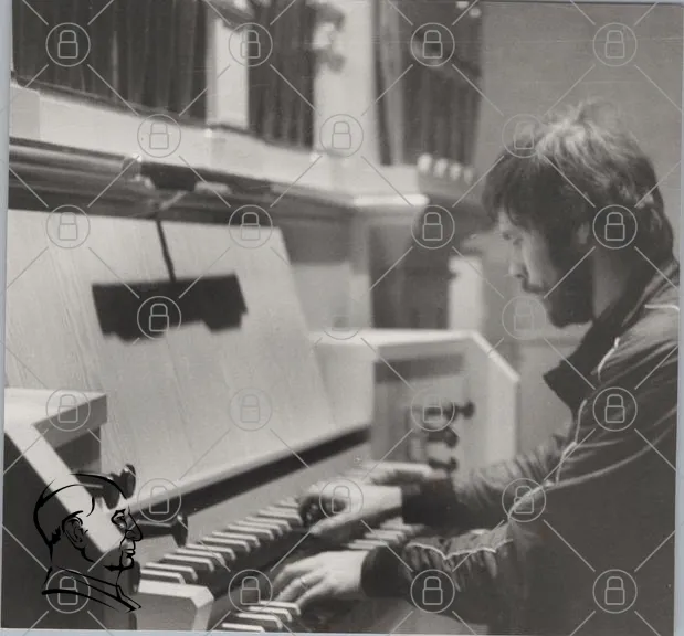 orgel, musik, man, svartvitt, spelande, instrument, inomhus, koncentration, vintage, retro, 1970-tal, klassisk, melodisk, komposition, musiker, kreativitet, ljud, noter, harmonier, kultur, konst, passion, uttryck, scen, performance, ljudlandskap, musikaliskt, improvisation, stil, atmosfär, känsla