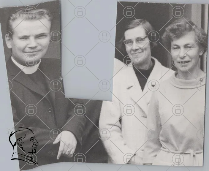 svartvitt, foto, personer, leende, kläder, 1960-tal, grupp, människa, kvinna, präst, glasögon, porträtt, traditionell, bakgrund, ansikten, samling, historia, minnen, socialt, gemenskap