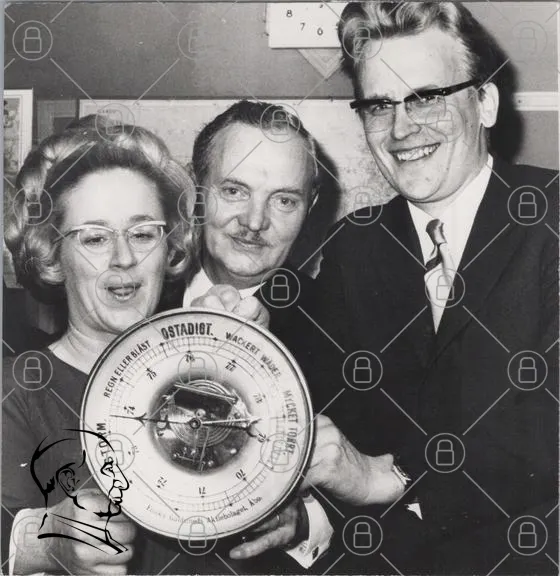historisk, svartvit, foto, människor, pris, platta, presentation, leende, kontor, 1960-tal, teknik, forskning, vetenskap, samarbete, dokument, karta, glasögon, kvinna, man, grupp, minne, nostalgi, utmärkelse, tradition, kultur, kommunikation, innovation, atmosfär, föreläsning, utbildning