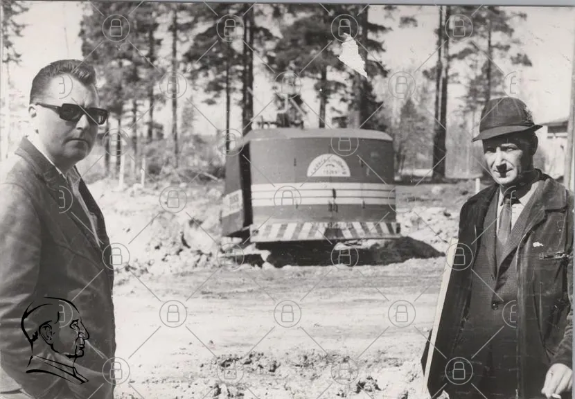 svartvit, foto, skog, män, lastbil, byggarbetsplats, träd, 1960-tal, retro, industri, arbete, landskap, maskiner, grus, natur, utomhus, vintage, fordon, män i glasögon, byggmaterial, anläggning, historisk, gammal, transport, arbetskläder, miljö, teknik, arbetsplats, landskapsbild