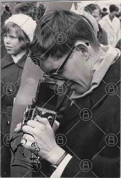 fotograf, kamera, svartvitt, retro, 1960-tal, man, glasögon, fokus, porträtt, människor, utomhus, kläder, vintage, dokumentation, händelse, nostalgi, bild, fotografering, evenemang, ansikte