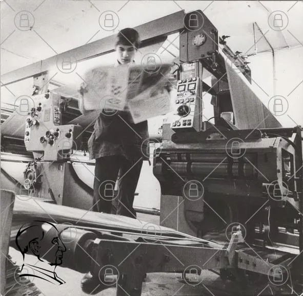 tryckeri, tidning, tryckpress, man, arbete, svartvitt, industri, papper, maskin, produktion, journalistik, 1960-tal, teknik, verkstad, tryckning, press, publicering, nyheter, hantverk, professionell