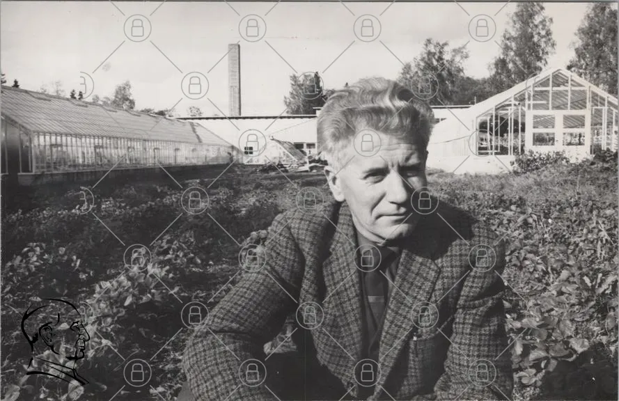 man, kostym, trädgård, växthus, svartvit, landskap, natur, odling, växter, 1950-tal, porträtt, jordbruk, grönsaker, industri, bakgrund, gammal, traditionell, utomhus, fotografi, historia