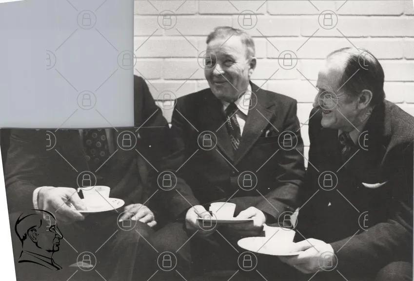 kaffe, män, kostymer, leende, samtal, svartvitt, möte, koppar, vägg, inomhus, 1970-tal, socialt, diskussion, tradition, vänskap, stil, kläder, ansikten, uttryck, gemenskap