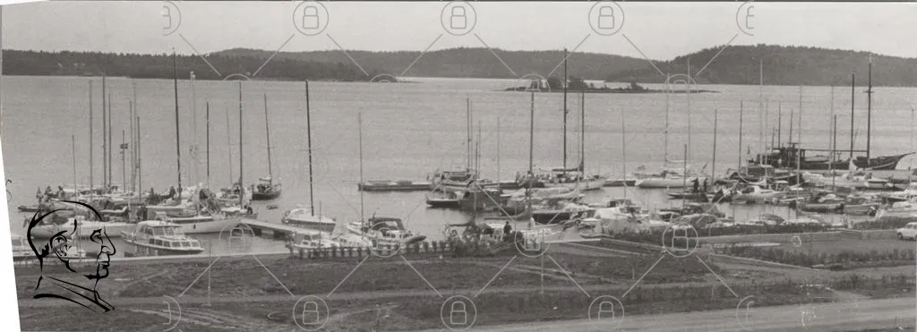 båtar, hamn, vatten, landskap, svartvit, segelbåtar, motorbåtar, brygga, natur, öar, människor, fiske, sommar, sjö, kaj, båtliv, rekreation, transport, turism, stillhet, avkoppling