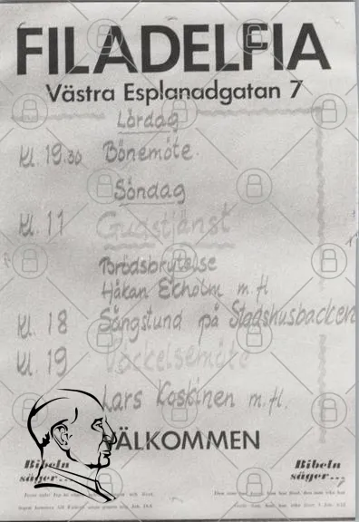Västra Esplanadgatan 7, Bönemöte, Söndag, Gudstjänst, Torsdagsbrytelse, Håkan Echoln, Sångstund, Stadshusbacken, Väckelsändte, Lars Koskinen, VÄLKOMMEN