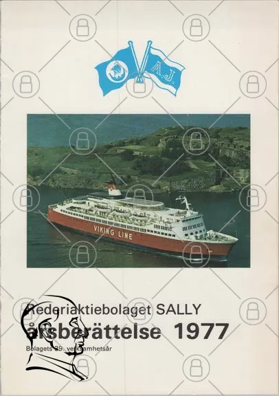 Viking Line, färja, Rederiaktsbolaget Sally, årsberättelse, 1977, hav, landskap, sjöfart, transport, skärgård, Sverige, Finland, passagerare, båt, maritim, historia, dokument, företag, rapport, sjö, resor, turism, färjetrafik, sjötransport, kust, öar, sjövägar, verksamhet, ekonomi, affärsrapport, sjöfartsindustri