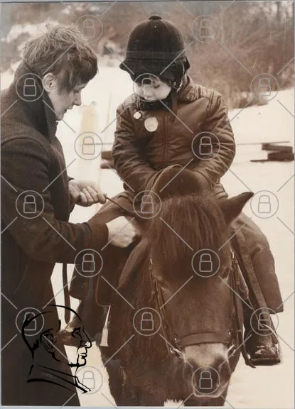 häst, barn, ridning, vuxen, vinter, hjälm, sadel, natur, svartvitt, familj, utomhus, lek, tradition, nostalgi, djur, kläder, ansikte, glädje, samspel, aktivitet