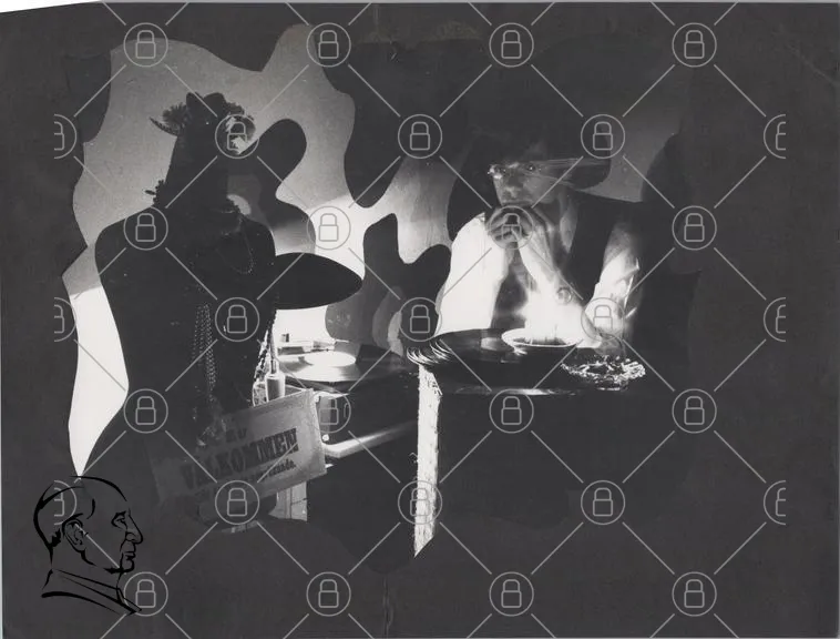 man, svartvitt, kläder, mannequin, bord, skåp, dekoration, retro, vintage, ljus, skugga, accessoarer, fotografi, konst, stil, 1900-tal, inredning, kreativitet, atmosfär, detaljer, uttryck, stiliserad, nostalgisk, scen, objekt, interiör, mode, design, kultur, presentation