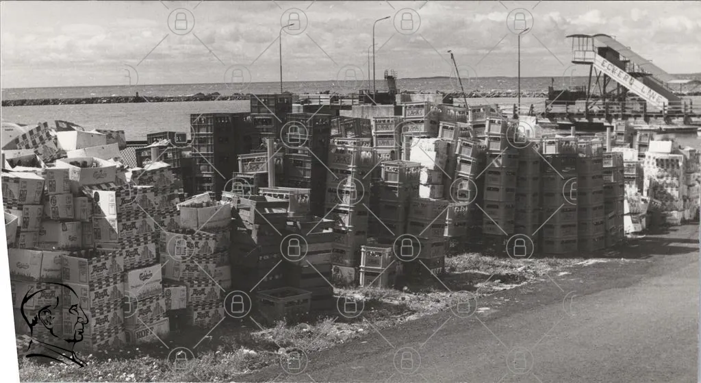kassar, staplade, hav, hamn, lastning, transport, containrar, industri, svartvit, landskap, väg, ljus, skugga, byggnader, utrustning, fiske, lastbil, container, miljö, natur, lager, ekonomi, verksamhet, arbete, struktur, förråd, material, kusten, säsong, produktion