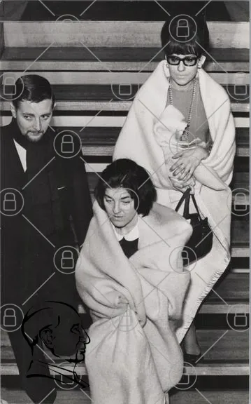 svartvit, människor, trappa, filt, kläder, kvinna, man, ansiktsuttryck, mode, 1960-tal, stil, accessoarer, handväska, skägg, hår, nedåt, samspel, känslor, kroppsspråk, social interaktion