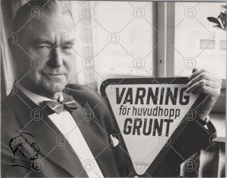 man, kostym, fluga, svartvitt, varning, skylt, huvudhopp, grunt, fönster, inomhus, porträtt, gammal, klassisk, stil, ansikte, uttryck, fotografi, retro, 1900-tal, svensk, säkerhet, varningstext, manlig, vuxen, allvarlig, traditionell, klädsel, kultur, historia, svart, vit