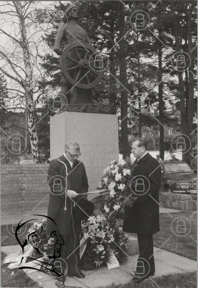 staty, blommor, krans, minnesmärke, män, högtid, träd, vinter, svartvitt, ceremoni, respekt, historia, offentlig, plats, monument, hyllning, tradition, samling, ledare, samhälle, kultur, minne, ära, natur, park, bilar, kläder, hatt, uttryck