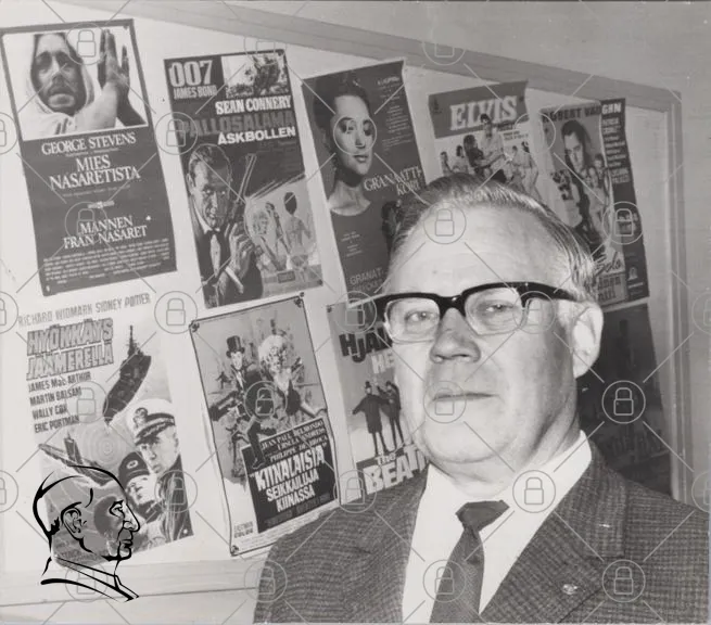 man, glasögon, svartvitt, affischer, filmer, James Bond, Sean Connery, Elvis, George Stevens, Männens frän Nasaret, Kinnula, Hjärnans kamrater, Askbollen, 007, filmhistorik, retro, 1960-tal, kultur, nostalgi, biograf, filmkonst, porträtt, vintage, klassiska filmer, filmplakat, svensk film, filmälskare