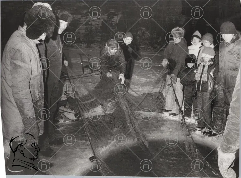 vinter, isfiske, nät, människor, vinterkläder, is, snö, fiske, utomhus, grupp, tradition, kallt, mössor, handskar, sjö, fiskenät, aktivitet, vinterlandskap, samling, fiskeutrustning