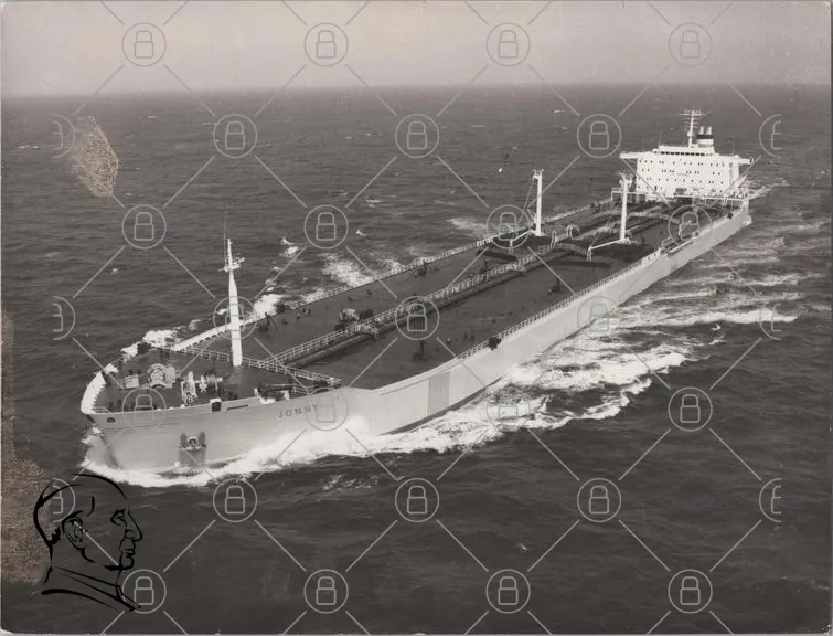 fartyg, lastfartyg, hav, sjöfart, transport, ocean, last, skepp, marin, industri, navigering, vatten, fartygsdesign, frakt, sjö, kapten, besättning, hamn, fartygsnamn, Jonny, svartvitt, historia, sjöfartsindustri, sjötransport, lastning, sjövägar, fartygsoperationer