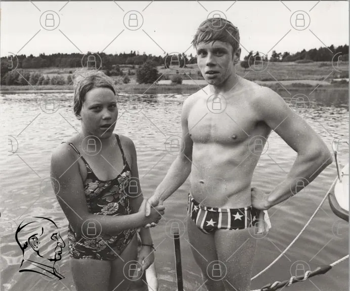 simning, sjö, sommar, ungdomar, svartvitt, fiske, bad, natur, kläder, handskakning, pojke, flicka, sport, vatten, landskap, avslappnat, vänskap, glädje, tradition, utomhus, aktivitet, fiskeutrustning, badkläder, ungdom, rolig, minnen, nostalgi, familj, gemenskap