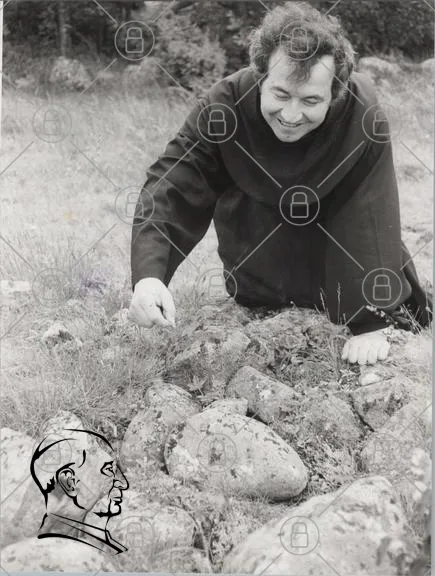 man, kläder, svart, leende, mark, stenar, gräs, natur, hand, arbete, fotografi, svartvitt, utomhus, glädje, fokus, traditionell, kultur, miljö, samspel, upptäckte, historia, landskap, person, interaktion, stillhet, lugn, kreativitet, utforskning