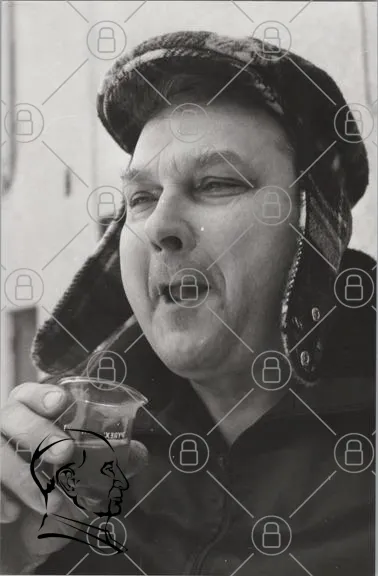 man, glas, dryck, vinter, hatt, snö, ansikte, leende, svartvitt, utomhus, nöje, tradition, fest, gammal, kultur, vinterkläder, uttryck, glädje, social, samvaro