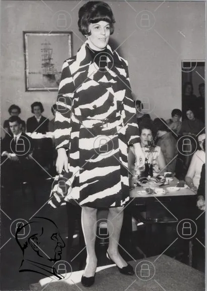 mode, kvinna, svartvit, mönster, klänning, 1950-tal, catwalk, stil, retro, fotografi, publik, restaurang, modevisning, kläder, elegans, vintage, socialt, ängelholm, modeikoner, ätande, drycker