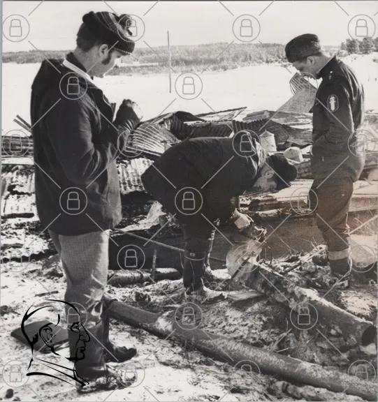 människor, snö, vinter, undersökning, föremål, kläder, svartvitt, utomhus, skog, mark, aktivitet, forskning, säkerhet, militär, utrustning, detaljer, plats, historisk, samarbete, analys, observation, natur, miljö, spår, händelse, arbete, professionell, fokus, intresse, inspektion