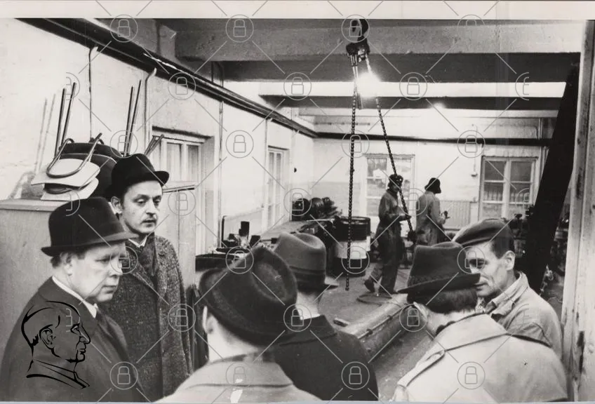 svartvitt, historisk, män, hattar, fabrik, verkstad, arbete, 1900-tal, industri, grupp, inomhus, maskiner, kläder, fotografi, gammal, människor, samling, miljö, teknik, tradition, stil, interiör, belysning, skugga, ansikten, uttryck, detaljer, atmosfär, retro, kultur