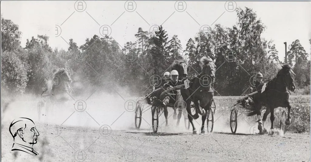 hästar, trav, tävling, sport, sulky, jockey, skog, damm, svartvitt, hastighet, natur, ridning, ekipage, travbana, hästkapplöpning, utomhus, motion, tradition, tävlingshästar, adrenalin